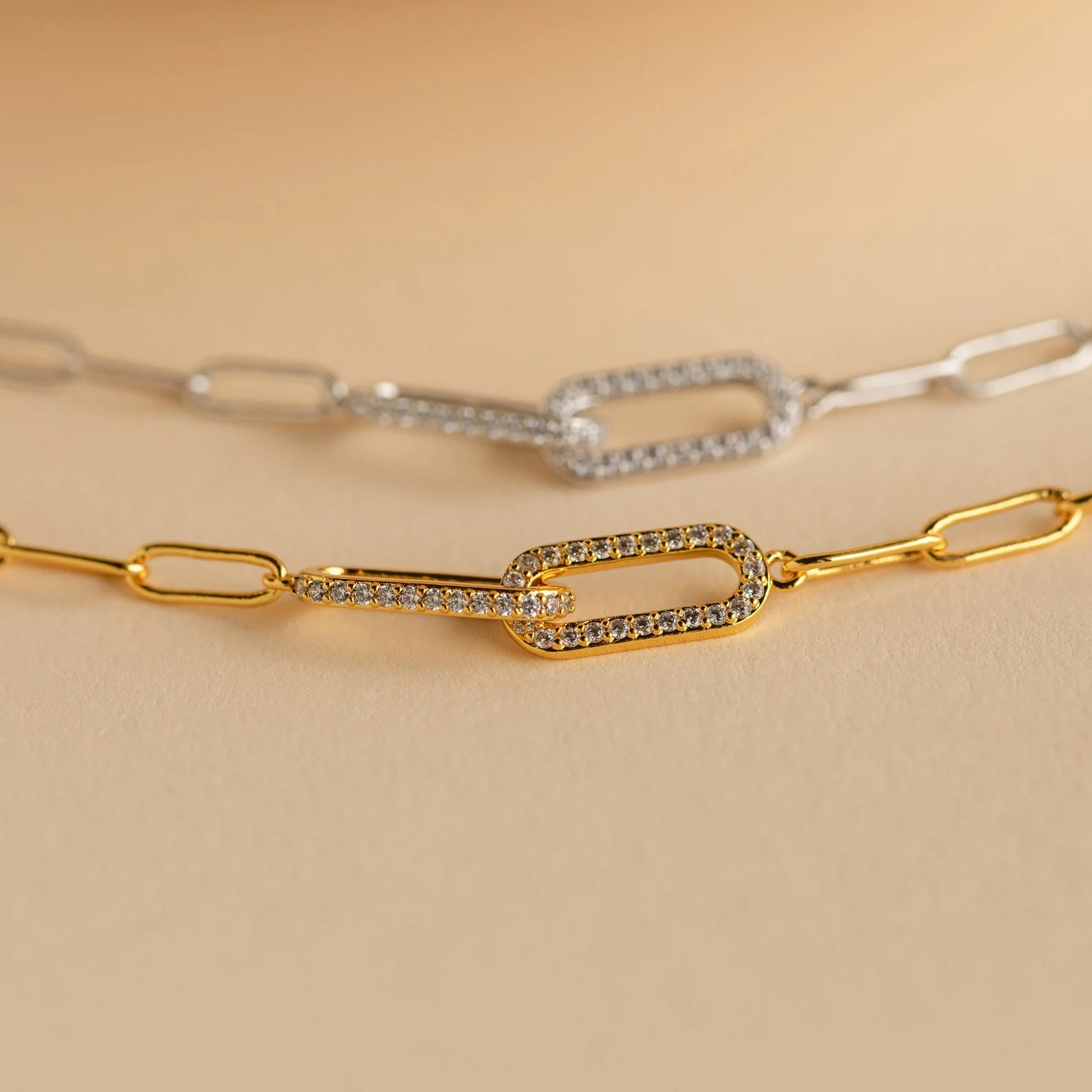 Our Pave Link Chain Bracelet combines the allure of pave diamonds with a minimalistic style, creating a look that is both chic and timeless. This minimalist bracelet can be worn for a special occasion or for everyday wear, a true statement piece that will effortlessly elevate any outfit.