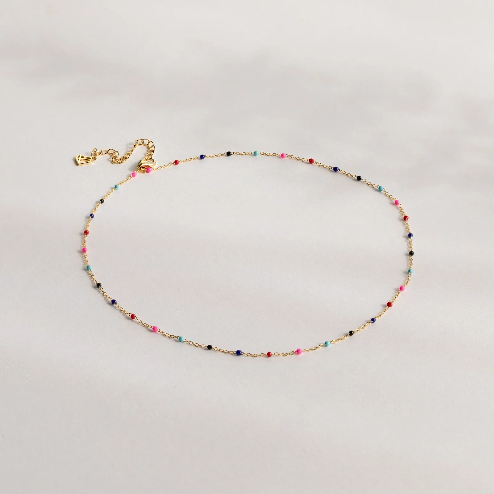 Make a vibrant entrance with the Rainbow Station Necklace. We've taken the nostalgia of colorful necklaces worn in your youth, and modernized it into a trendy everyday design. Featuring rainbow beaded charms stationed on a dainty chain, this eye catching necklace will add a playful touch to any look.