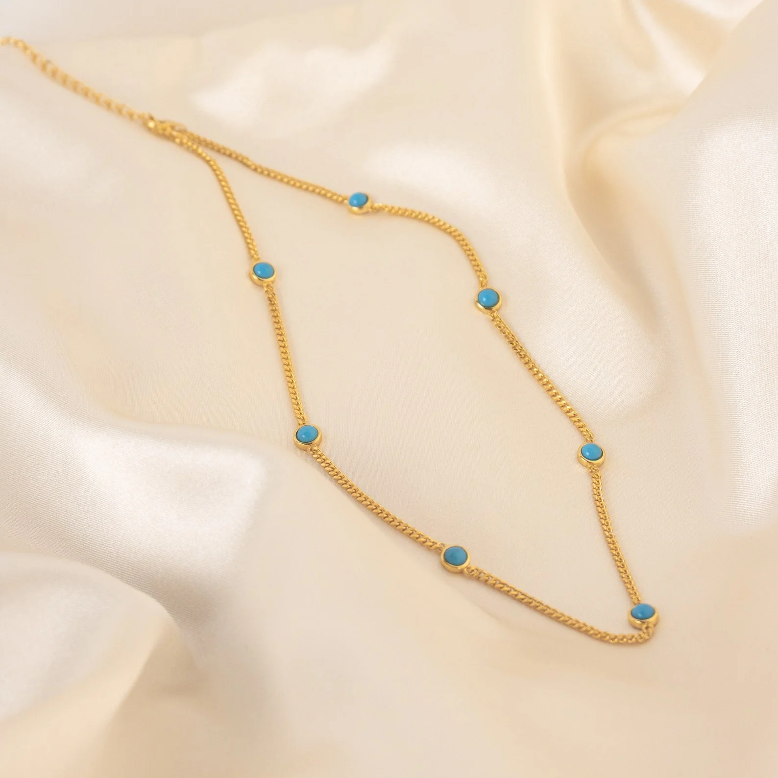 Channel your inner greek goddess with the Santorini Turquoise Choker. The perfect choker necklace to take on vacation. A thick curb chain lined with bright turquoise drops, add a pop of color to your all white outfit.